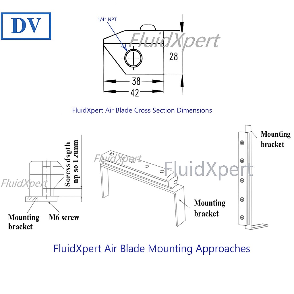 DV-AB5 air blade / air knife with a variety of lengths, made with aluminum alloy.